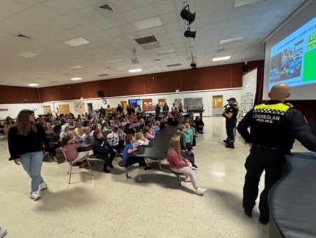 Lögreglan var hjá okkur í dag, fimmtudaginn 2. október til að fræða nemendur í 1.-4. bekk um mikilvægi öryggis í umferðinni með sérstakri áherslu á hjólreiðar, notkun hjálma og endurskinsmerkja. Lögreglumennirnir kynna fyrir nemendum helstu umferðarreglur sem snúa að hjólreiðafólki og útskýra hvernig öryggishjálmar og notkun endurskinsmerkja geta komið í veg fyrir alvarlega höfuðáverka við slys.